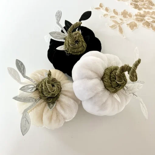 Set of 3 Mini Pumpkin Plushies, Fall decorations, Halloween, Autumn, black white and cream